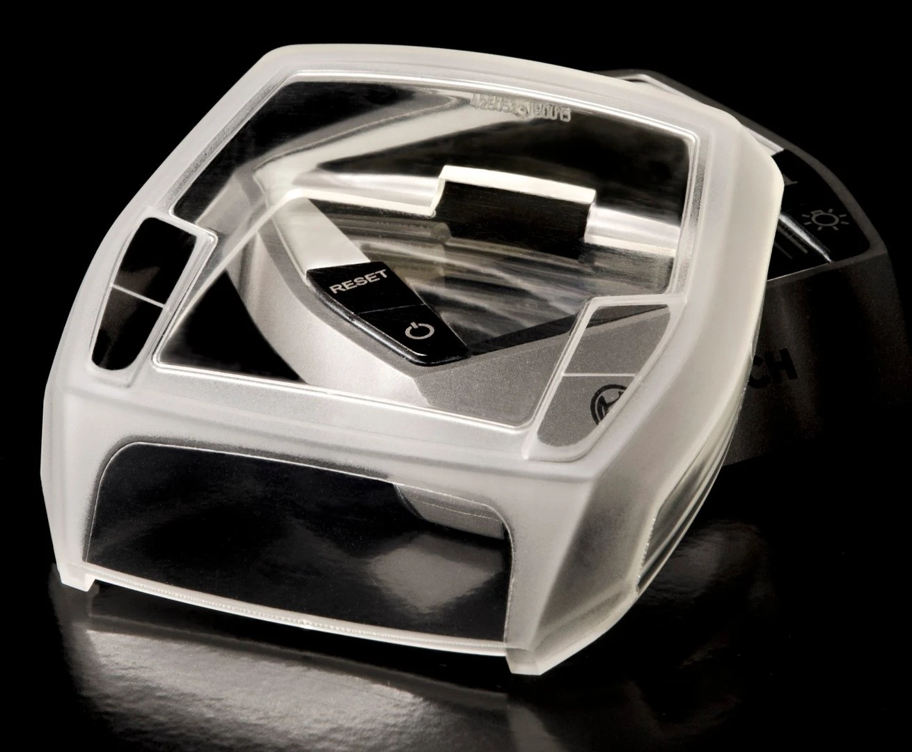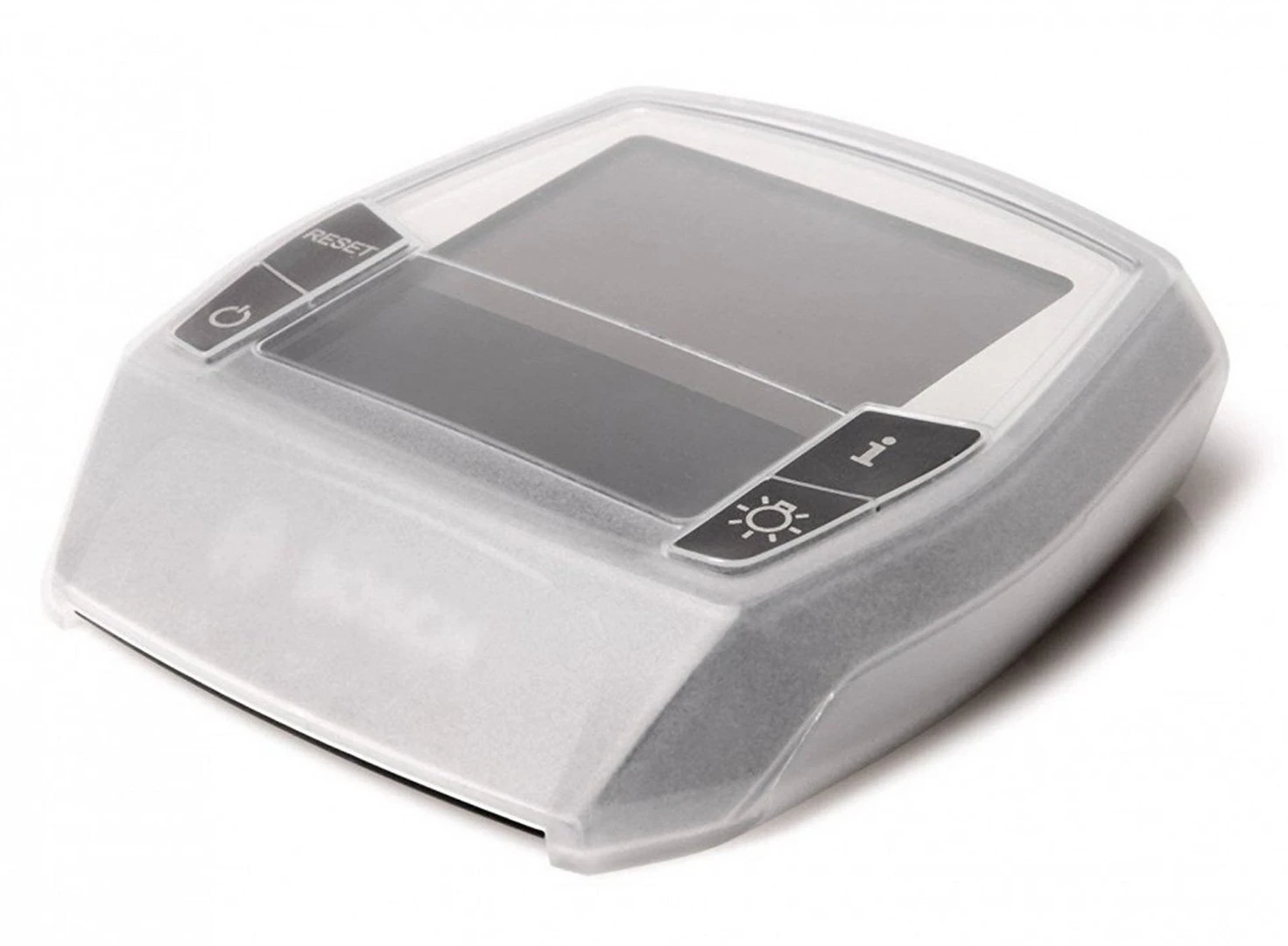 Dank dem transparenten hochpolierten Sichtfeld, bleibt der uneingeschränkte Blick auf die Digitalanzeige sowie die Bedienbarkeit in vollem Umfang erhalten. Und auch wenn die Displayeinheit abgenommen und in Rucksack oder Tasche gepackt wird, kann die weiche Schutz-Hülle als Protektor vor Verschmutzungen, Stößen und Beschädigungen darauf verbleiben.