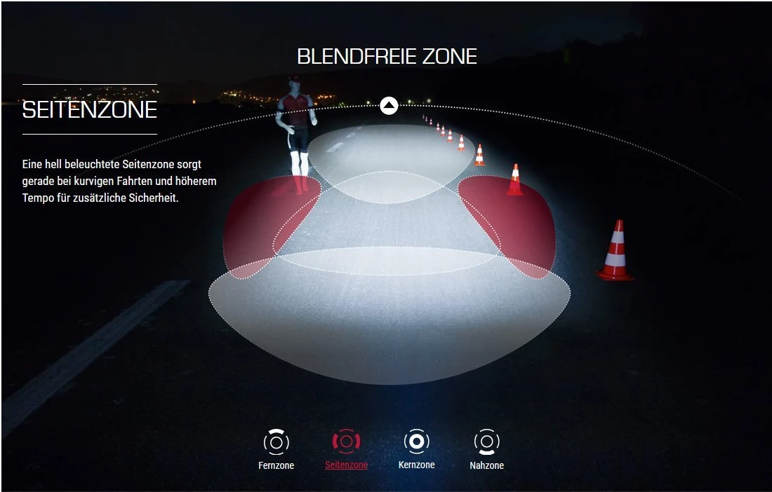 Dank der hochwertigen LED-Linse ermöglicht die AURA 60 USB eine sehr gleichmäßige Lichtverteilung und bietet optimale Sicht im Fern-, Seiten-, Kern- und Nahbereich, ohne dabei andere Verkehrsteilnehmer zu blenden. Damit gewährleistet sie höchste Sicherheit im Straßenverkehr.